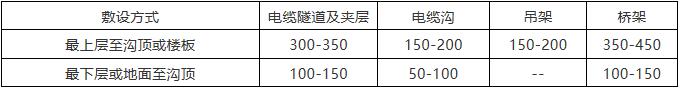 電纜支架最上層及最下層至溝頂、樓板或溝底、地面大的距離,當設計無規(guī)定時,不宜小于表2的數(shù)值。