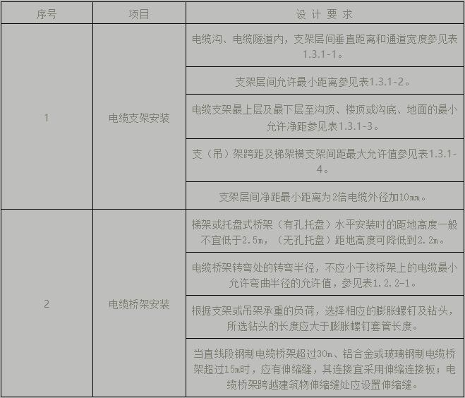 表1.2.3  電纜支架/橋架安裝設(shè)計要求控制點