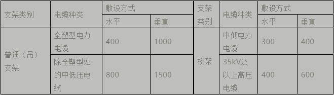 (3)電纜溝、電纜隧道內(nèi),支架層間垂直距離和通道寬度不應(yīng)小于下表所示數(shù)值。