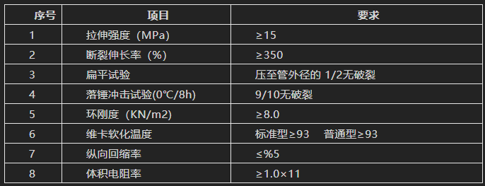 8、安裝性能:CPVC電力管重量輕、強度高、施工敷設(shè)方法簡捷,能實現(xiàn)夜間開挖埋設(shè),回填路面,白天可以照常通車;采用彈性密封橡膠圈承插式連接,安裝連接方便、快捷、連接密封性能良好,能防止地下水的滲漏,有效保護(hù)電力電纜的使用安全。