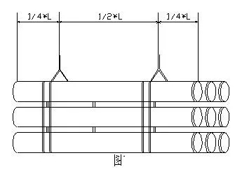 2.2管徑小于等于600mm的管子通??梢猿山M包裝,成組裝運(yùn)時(shí),可使用如圖1所示的一對(duì)吊帶。直徑較大的管子一般不采用成組裝運(yùn)。