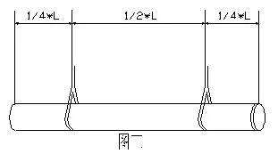 裝卸單管時(shí),要使用柔順的吊帶、吊繩或繩索起吊,帆布帶或尼龍繩,最小寬度為19cm,尼龍繩的最小直徑為30mm,若用鋼索或鐵鏈吊運(yùn)管子必須在上面套上橡膠管或其它柔性管,禁止拋落或碰擊管道。管子可用單點(diǎn)起吊(如圖2),也可用兩點(diǎn)起吊(如圖3),此法易控制管子的穩(wěn)定,切勿將繩子穿過(guò)管子內(nèi)部?jī)啥撕笃鸬?由于管道表面比較光滑,為安全起見(jiàn),通常提起兩個(gè)點(diǎn))。